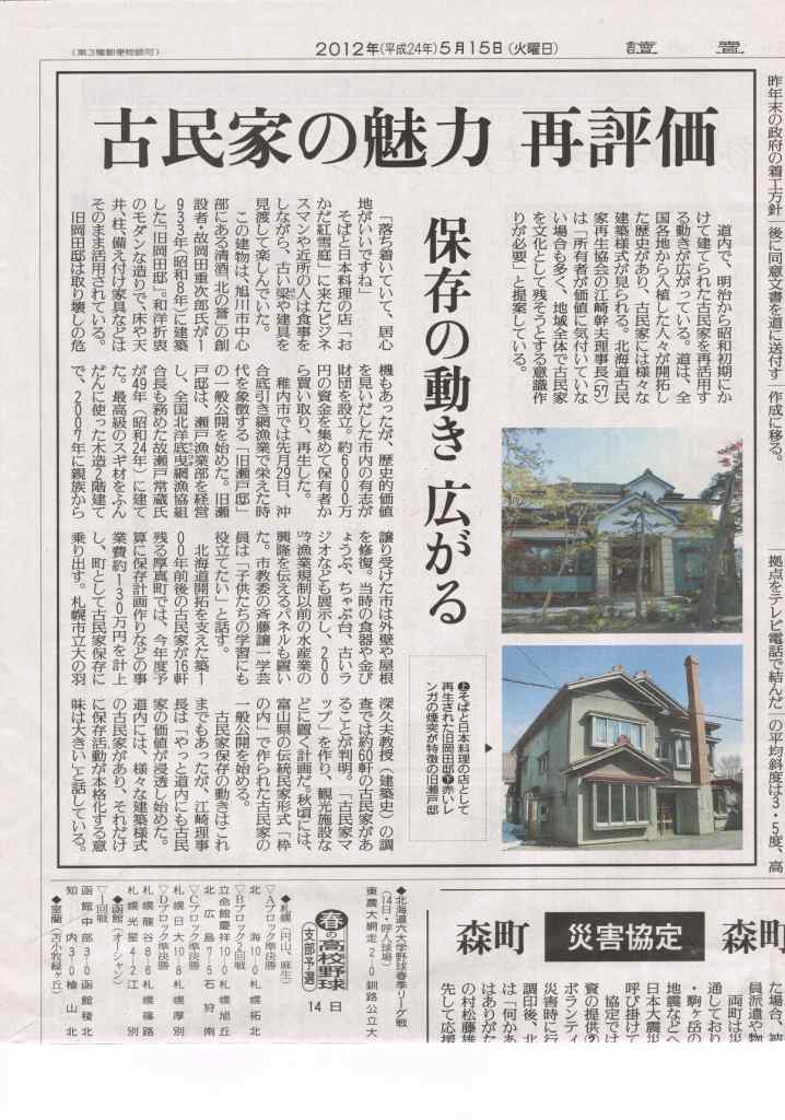 5月15日 読売新聞掲載記事「古民家の魅力再評価」