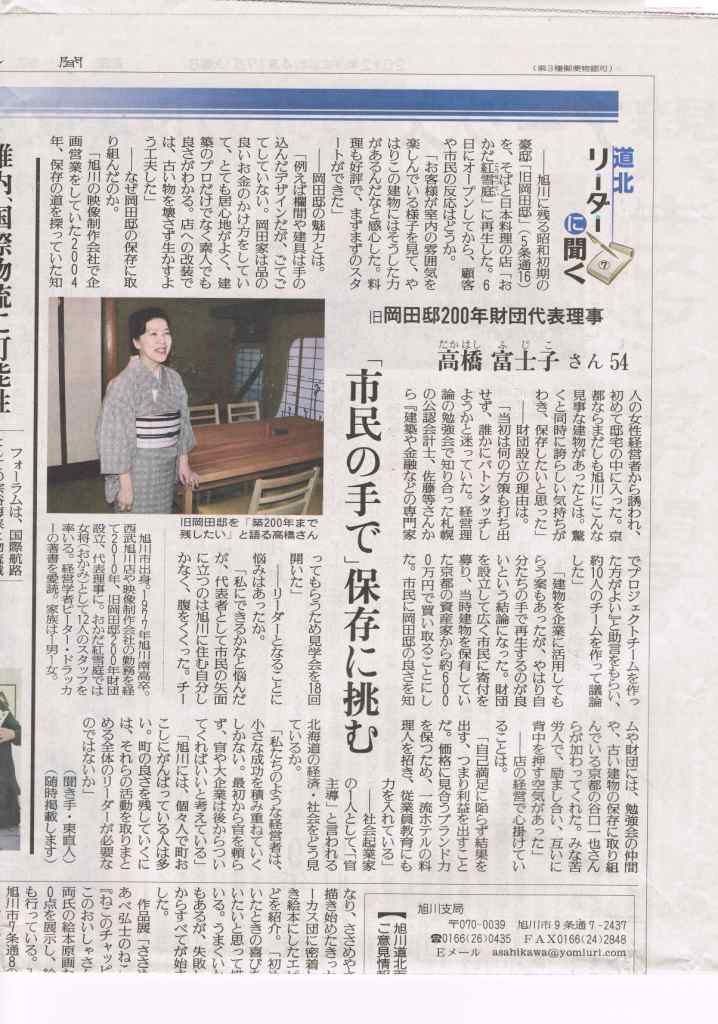 4月17日 読売新聞掲載記事「道北リーダーに聞く」
